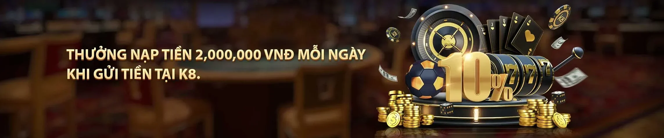 - Tham gia cược tại sảnh K8 casino nhận hoàn trả 1,000,000 VND mỗi ngày